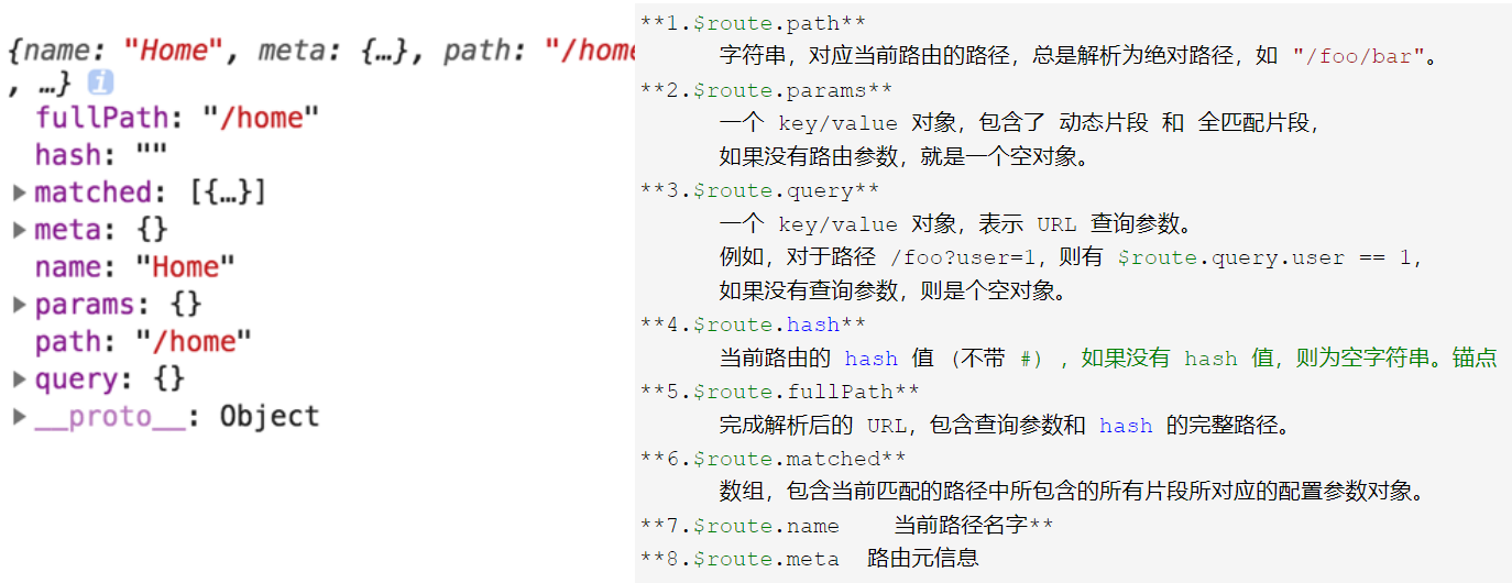 $route表示当前的路由信息,包含了当前URL的信息。包含当前的路径,参数,query对象等